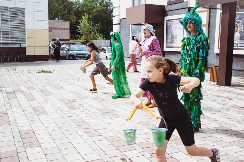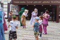 Также продолжается работа в рамках проекта "УенФест". 14 августа на площадке перед театром были организованы интересные национальные игры для воспитанников "Балкыш"а, маленьких артистов театральной студии "Нур".