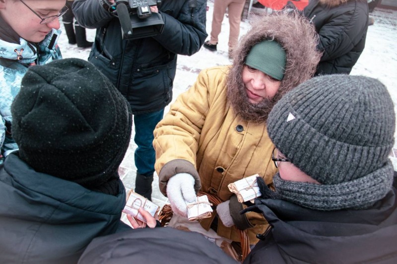 Одна из локаций проведения акции - площадка перед нашим театром. Сотрудники театра внесли свою лепту в проведение патриотической акции, они раздали собравшимся и прохожим кусочки хлеба весом 125 граммов – 125 граммов памяти. Это не просто раздача хлеба, а живой урок истории, который позволяет нам прикоснуться к той суровой правде и отдать дань уважения силе духа защитников и жителей блокадного Ленинграда. (2026)